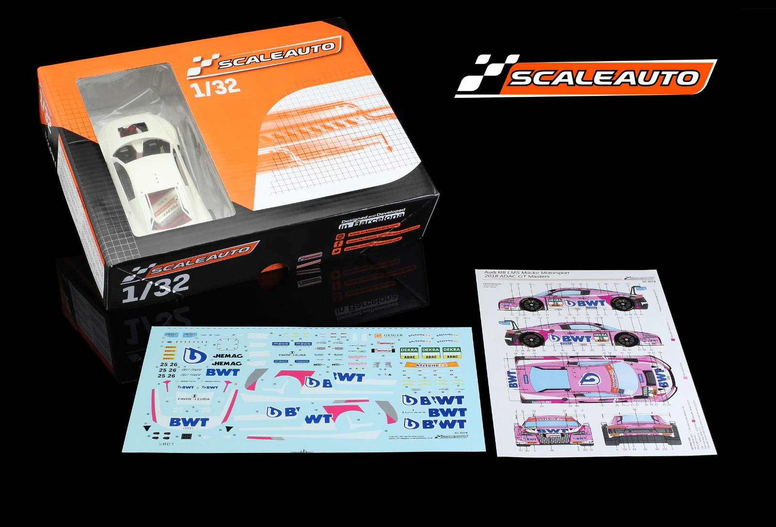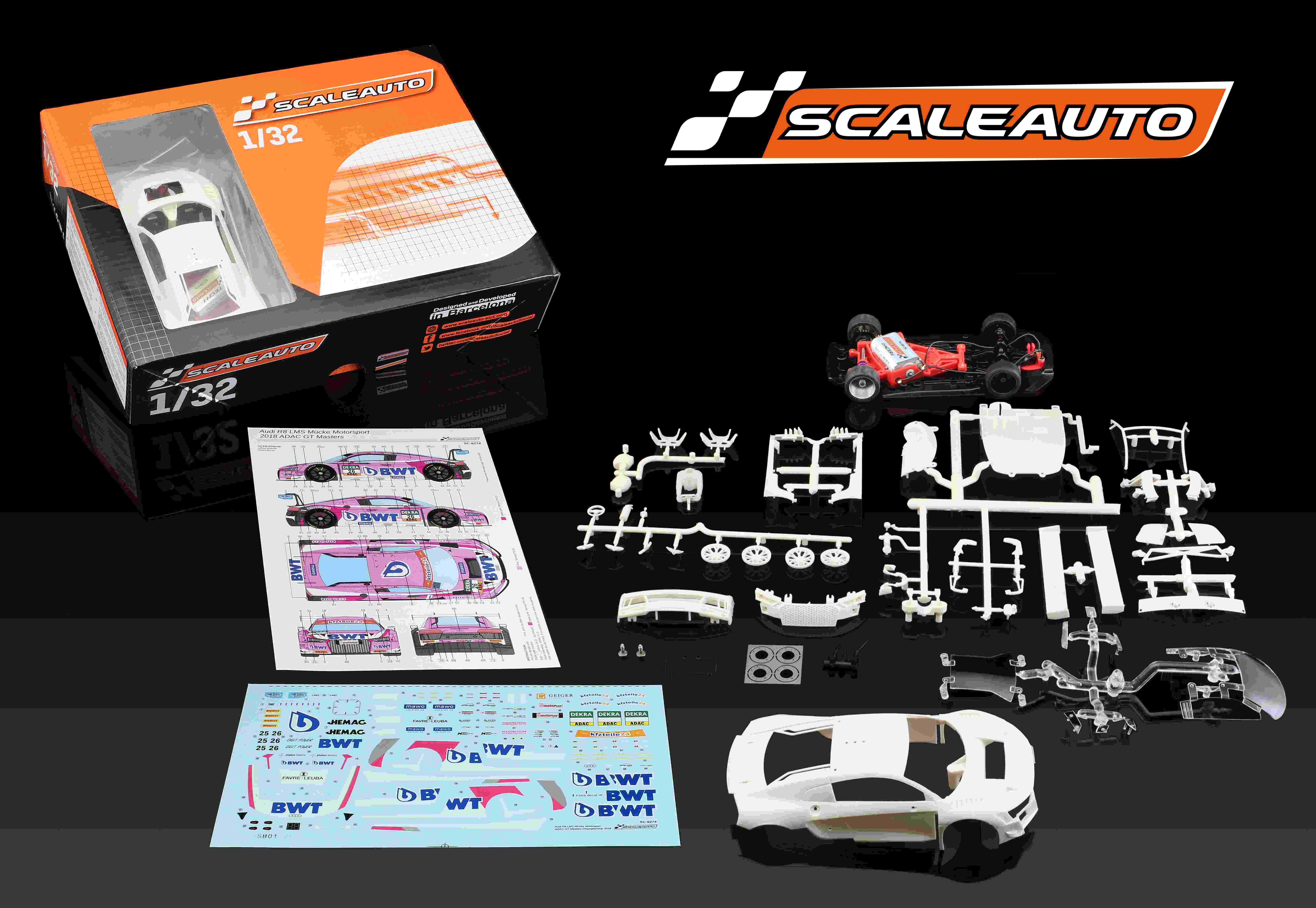• Kit blanco completo del R8LMS GT3 con calcas específicas del modelo participante a las ADAC GT Master 2018  #25 & #26 del equipo Mucke Motorsport.