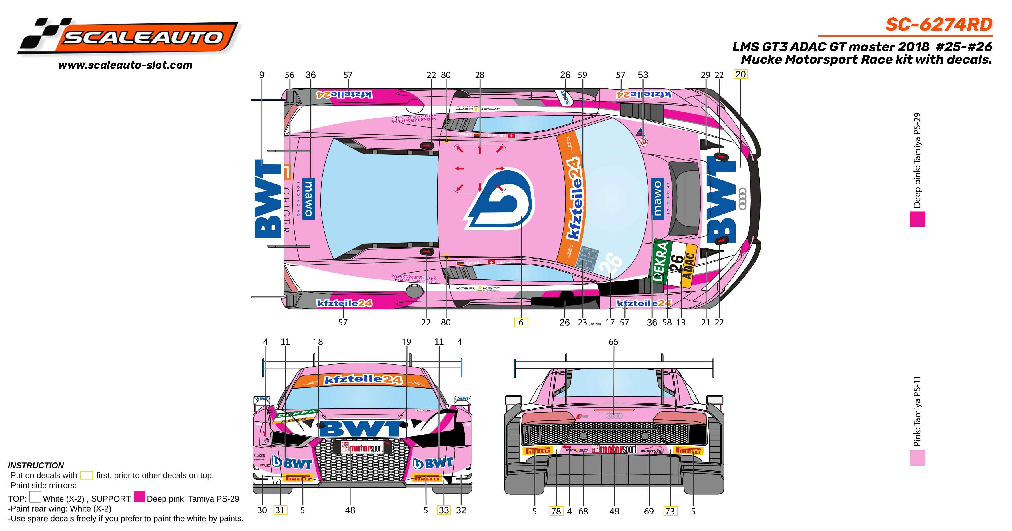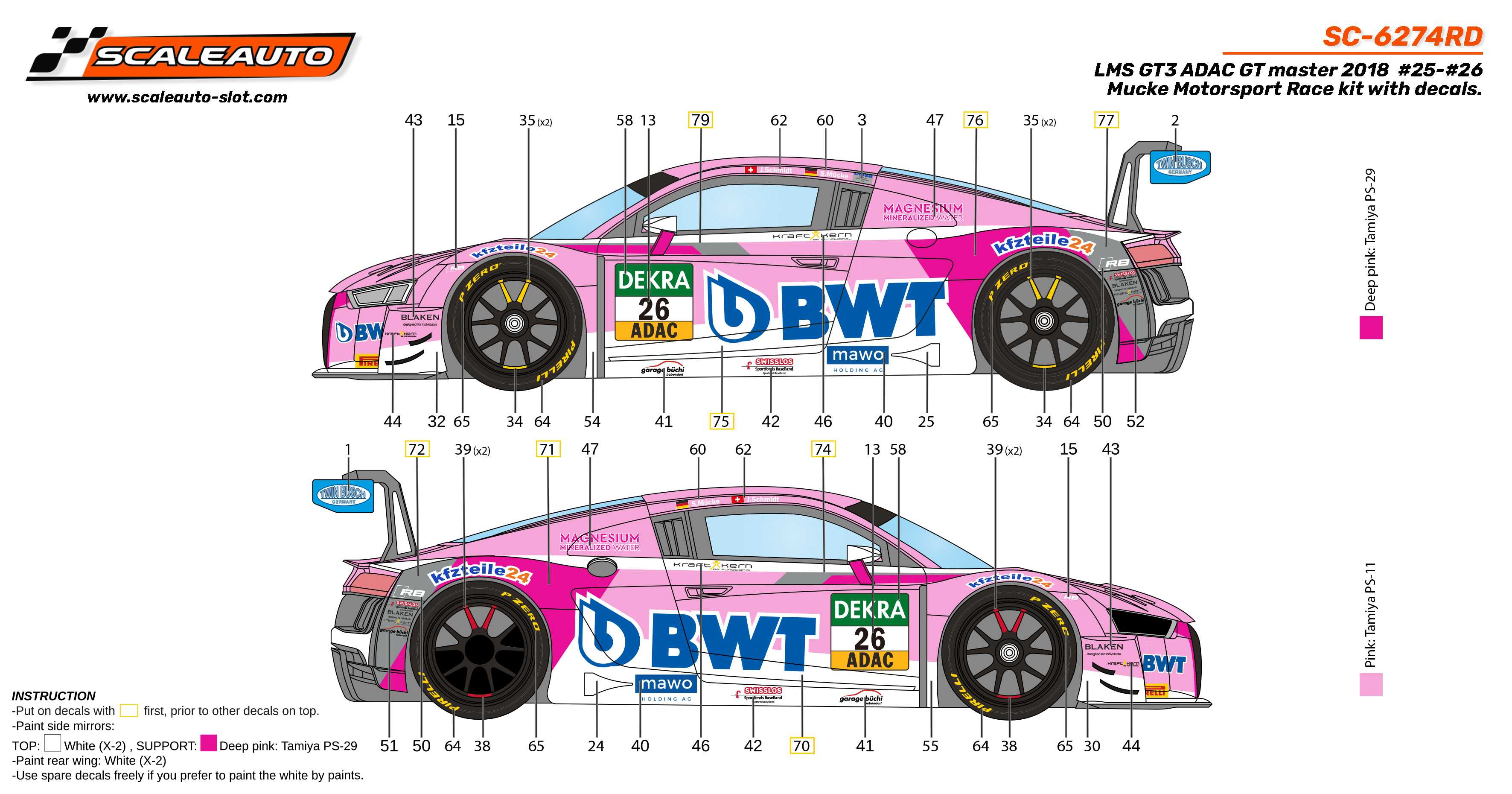 LMS GT3 ADAC GT Master 2018 #25 #26 Mucke Motorsport Race Kit con Calcas