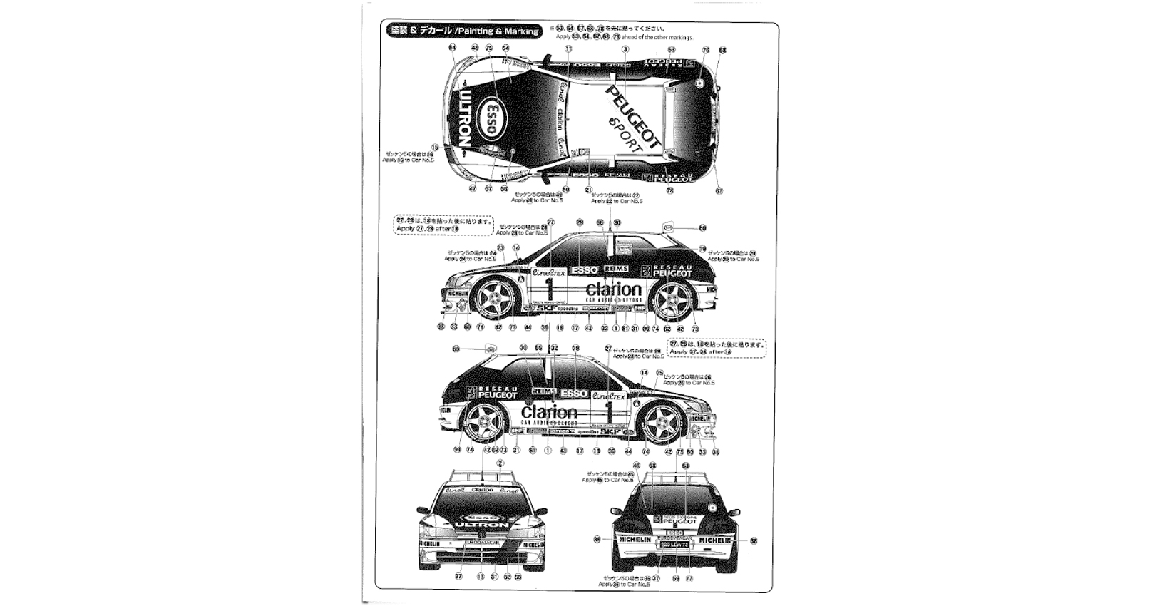 -Este es un nuevo kit de modelo de plástico ensamblado a escala 1/24 sin pintar que reproduce los autos atmosféricos de 2 litros de tracción delantera Peugeot 306 Maxi del equipo de fábrica Peugeot Sport e incluye todo el legado de carreras de los autos de rally Peugeot. Participó en 1997 en el rally de Montecarlo. Opciones de coche: # 1 y # 5 conducidos por François Delecour 1er lugar en la clase WRC de 2 litros. y # 5 François Chatriot.-La pintura y el pegamento no están incluidos.-Reproduce con precisión las ruedas Speedline y detalles como el alerón trasero.-El interior, como la barra antivuelco y el salpicadero, se reproducen en detalle.-Recrea la superficie inferior del chasis, la suspensión delantera / trasera y el panel del piso de manera realista.-El acabado es de 180 mm de longitud y 70 mm de ancho.* Recomiendo encarecidamente las piezas detalladas para 1/24 Peugeot 306 Maxi (artículo nº NU-E24009) Haga que su Peugeot 306 Maxi sea más realista. https://www.criccrac.com/tienda/product/7892-nu-e24009-1-24-grade-up-para-peugeot-306-maxi-1996-montecarlo